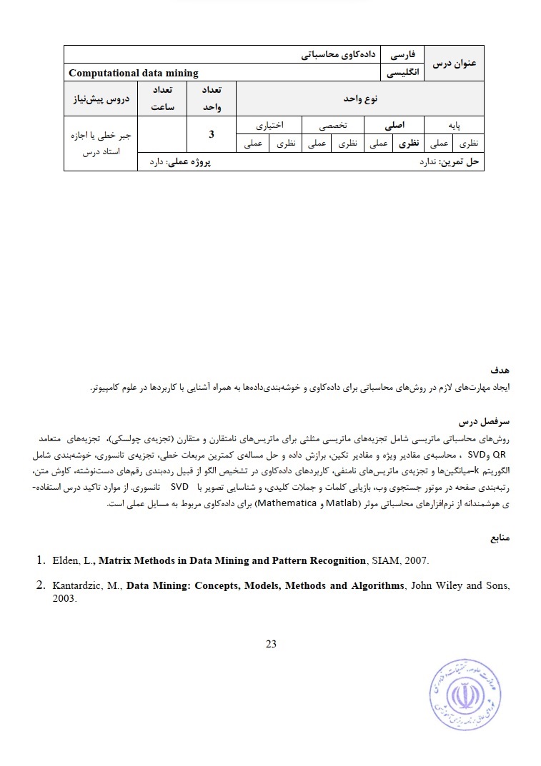 2- Matrix Methods in Data Mining and Pattern Recognition, Lars Eld´en, 2007.